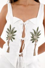 Su ruedo en pico y bordado de palmeras lo elevan a una pieza única. Perfecto para lucir con su falda en set y disfrutar de un resultado tan atractivo como tú.