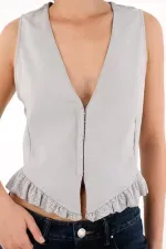 ¡Femenino, ligero y sofisticado! Este chaleco juega con mezclas de telas y texturas, logrando un diseño que es a la vez romántico y actual.
