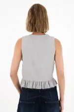 Su silueta relajada con cierre frontal y bolero inferior aporta un aire fluido y romántico. Perfecto para transformar looks básicos en outfits con sello distintivo.