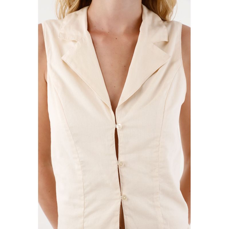 Esta tercera pieza es un esencial moderno gracias a su silueta semi ajustada y su cuello tipo sastre, que aportan estructura sin perder ligereza. El ajuste de botones en el frente permite llevarlo cerrado para un look más pulido o abierto para un estilo relajado y natural. Ideal para combinar con tops básicos, camisas ligeras o pantalones amplios, especialmente en lino, para crear outfits equilibrados, sofisticados y llenos de intención.