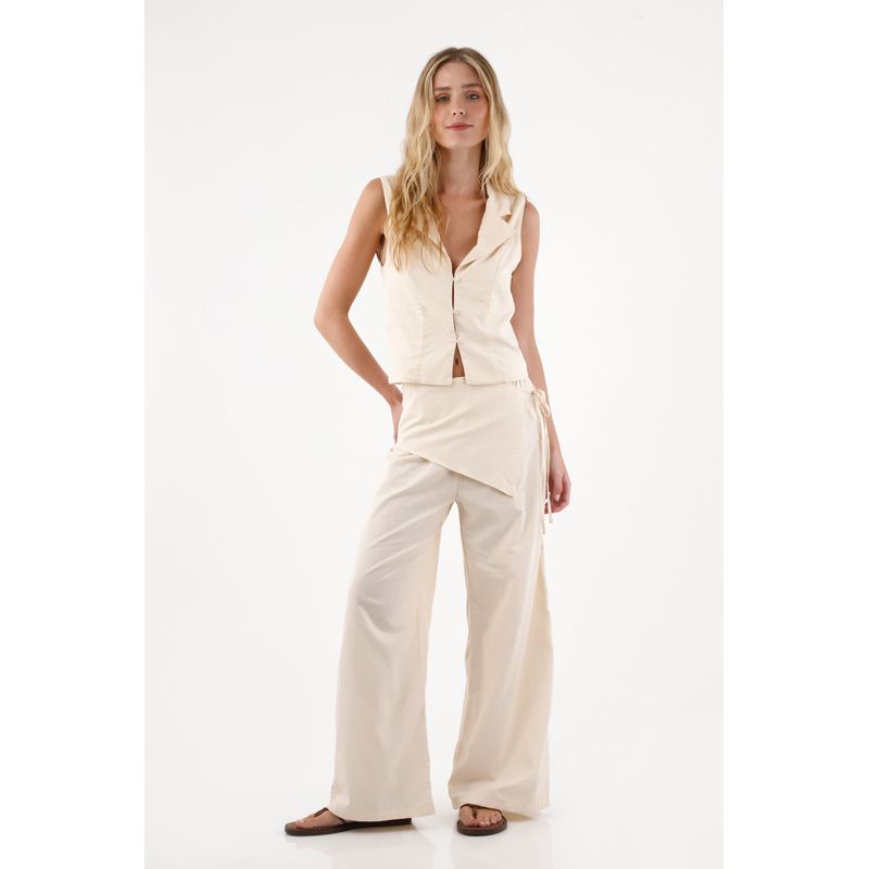 Está elaborado en una mezcla de algodón y lino, una combinación fresca, suave y transpirable que aporta textura y un acabado natural. Este tejido mantiene la estructura del chaleco sin dejar de ser cómodo, convirtiéndolo en una prenda versátil para usar en climas cálidos o durante el día.
