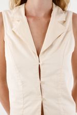 Esta tercera pieza es un esencial moderno gracias a su silueta semi ajustada y su cuello tipo sastre, que aportan estructura sin perder ligereza. El ajuste de botones en el frente permite llevarlo cerrado para un look más pulido o abierto para un estilo relajado y natural. Ideal para combinar con tops básicos, camisas ligeras o pantalones amplios, especialmente en lino, para crear outfits equilibrados, sofisticados y llenos de intención.