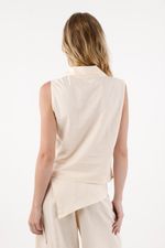 Está elaborado en una mezcla de algodón y lino, una combinación fresca, suave y transpirable que aporta textura y un acabado natural. Este tejido mantiene la estructura del chaleco sin dejar de ser cómodo, convirtiéndolo en una prenda versátil para usar en climas cálidos o durante el día.