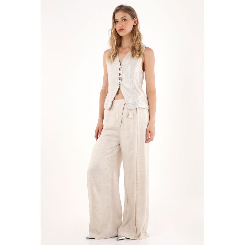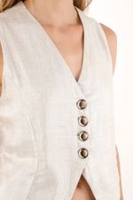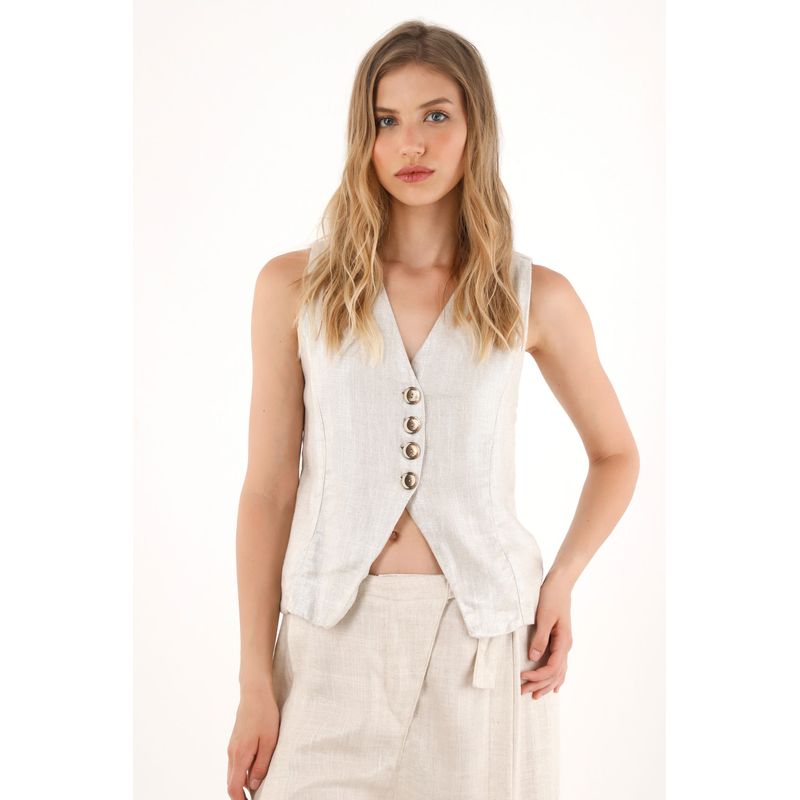 ¡Una pieza que grita autenticidad! Este chaleco, con efecto metalizado y escote en V, es una declaración de moda.