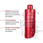 Champú fortificante con un sistema de activos que actúan a nivel del cuero cabelludo, contribuyendo a estimular el folículo piloso favoreciendo el crecimiento, reforzando la queratina y devolviendo la vitalidad e hidratación al cabello, gracias a su poder energizante y antioxidante. Sobre el tallo piloso, actúa reparando y reestructurando la fibra capilar, protegiéndola y fortaleciéndola desde el interior.