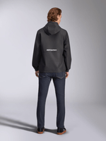 • Parche con logo en el pecho, bordado en la manga