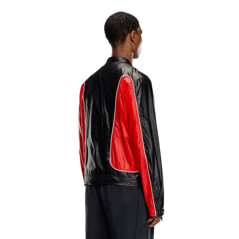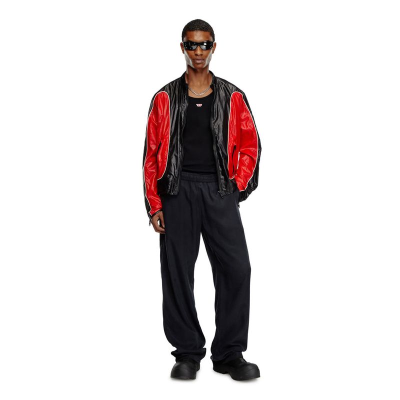 Chaqueta casual para hombre j-clays. Esta chaqueta biker para hombre, hecha con materiales reciclados, reelabora una silueta de motorista con paneles de micro ripstop y chintz, que se caracteriza por su acabado brillante y esmaltado. con diseño de fit regular, tiene ribetes y un interior forrado en malla. un logotipo oval d discreto adorna la manga.
