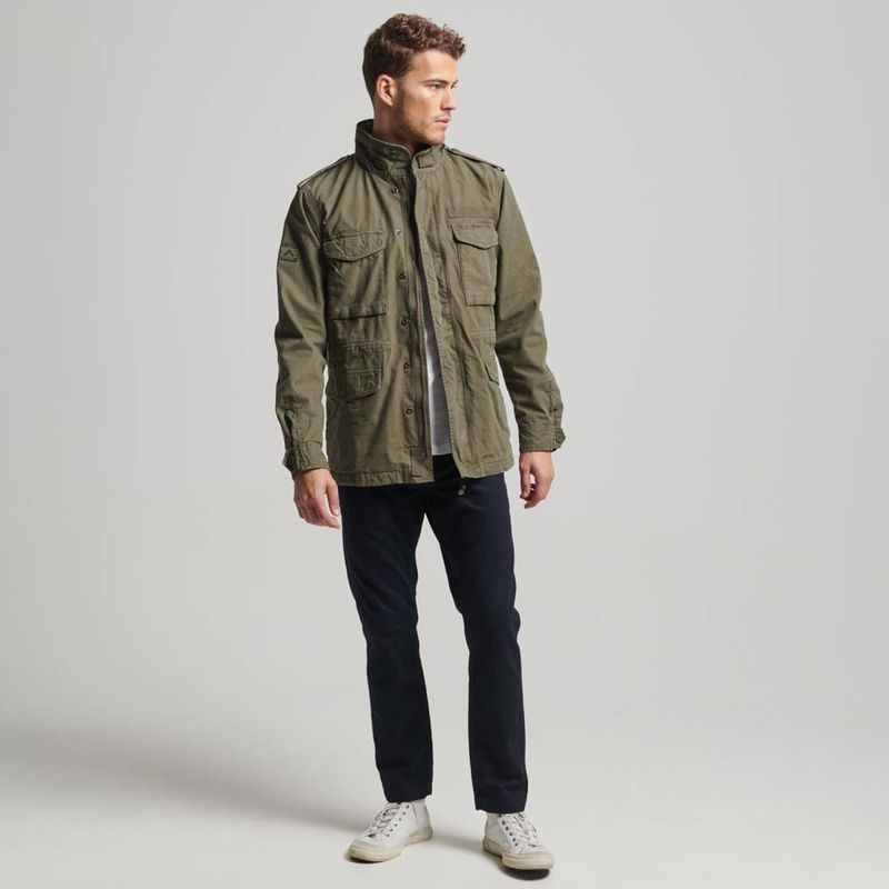 La ropa militar lleva generaciones inspirado el mundo de la moda y la chaqueta M65 es el epítome de la autenticidad. Hemos renovado el diseño clásico con aún más referencias militares para refinar tu look. El algodón de gran calidad y la cintura con cordón de ajuste maximizarán tu comodidad y te permitirán llevarla como más te guste. Esta chaqueta versátil es la prenda de transición perfecta para entretiempo. Corte relajado: el corte clásico de Superdry. Una prenda ni muy estrecha ni muy holgada, simplemente perfecta. Elige tu talla habitual, Cuello con cremallera y cierre de velcro, Charreteras, Cierre de cremallera y botones automáticos, Cuatro bolsillos con botones automáticos, Puños abotonados, Bolsillo interior con cierre de velcro, Cordón de ajuste en el interior de la cinturilla, Forro holgado, Insignia de Superdry.
