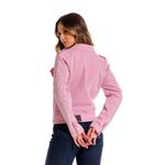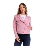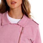 Chaqueta tipo biker en drill. Bolsillos en costados con cierre y hebilla metálica.