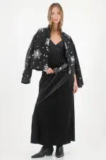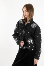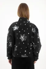 Esta chaqueta para mujer está diseñada con cuello alto y una silueta clásica que combina estilo y actitud. Su perilla con broches frontales aporta practicidad y un acabado limpio, mientras que el diseño en lentejuelas transforma la prenda en un statement perfecto para ocasiones especiales o looks nocturnos con mucha personalidad durante esta temporada festiva.
