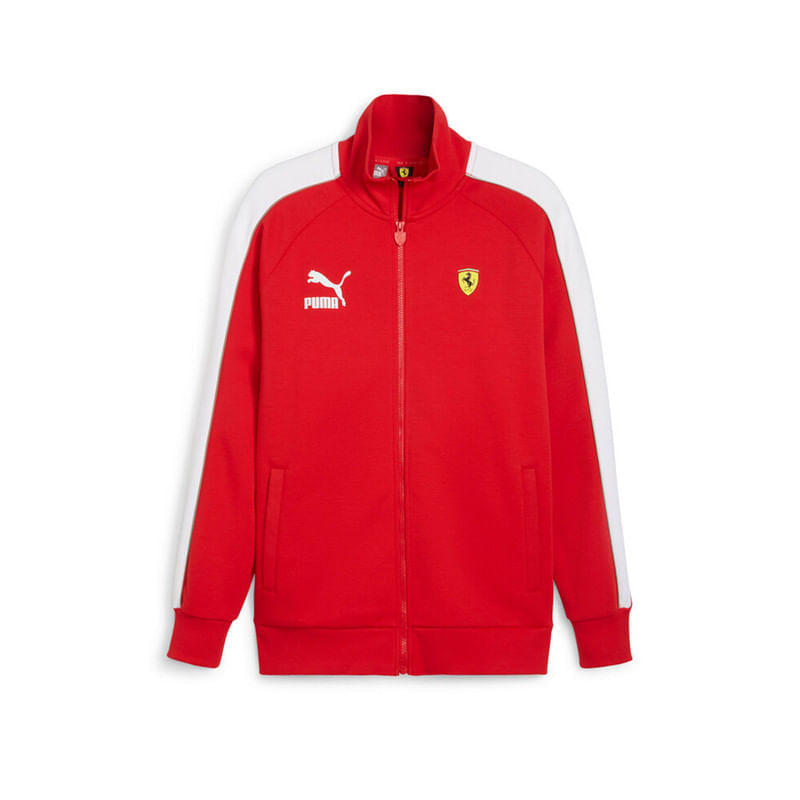 La colección T7, original de PUMA e inspirada en las pistas, se hizo famosa con sus rayas distintivas de 7 cm y rápidamente se volvió tan popular en las calles de la ciudad como en los campos de entrenamiento. Escondido en nuestros archivos, el traje ha sido replicado fielmente y es tan icónico hoy como lo fue en aquel entonces. Con rayas en las mangas y un ajuste elegante, esta chaqueta deportiva de la Scuderia Ferrari te hará revivir los clásicos con estilo.