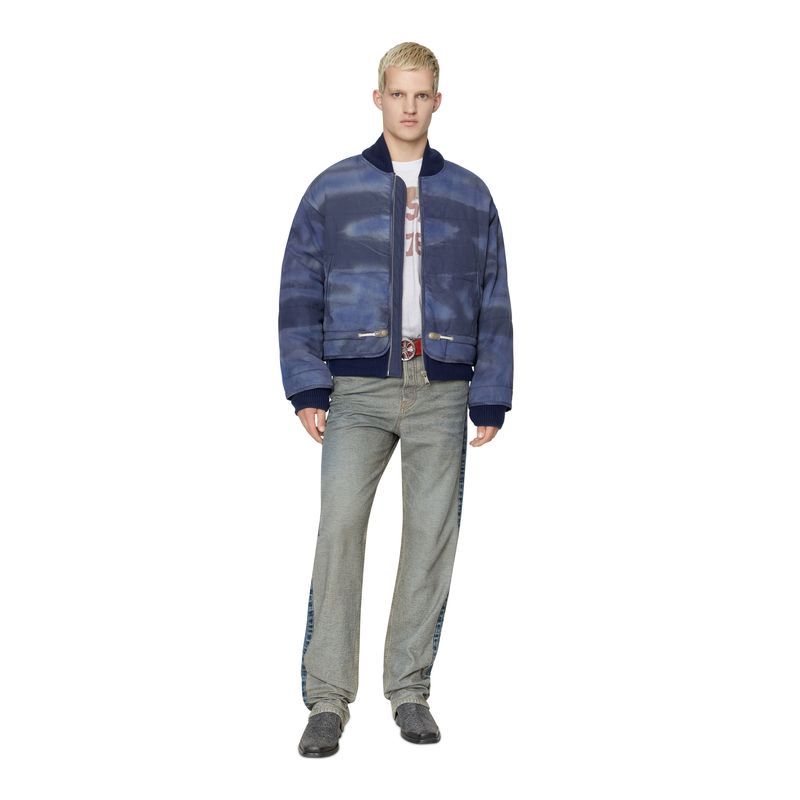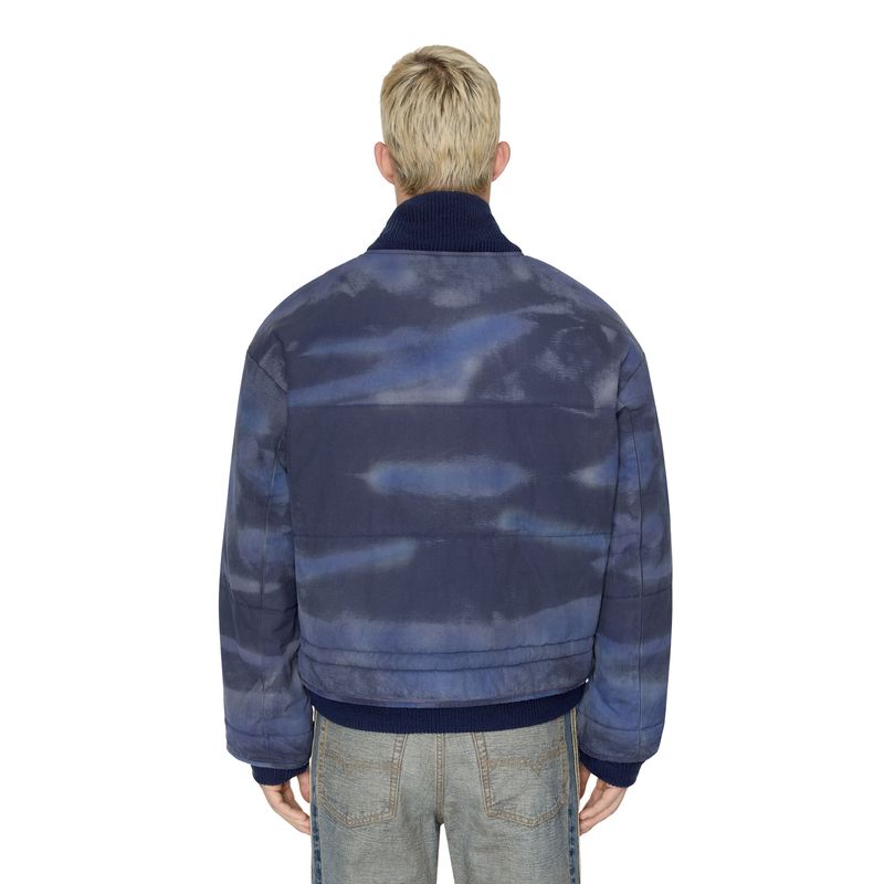 Diesel es una innovadora marca internacional de estilo de vida que produce una amplia colección de jeans, ropa y accesorios. Somos pioneros en denim y con el pasar de los años nos convertimos en una marca de ropa casual premium, siendo una verdadera alternativa en el mercado de lujo establecido. Somos una marca que representa la pasión, la individualidad y la autoexpresión. El Mundo DIESEL te espera. Chaqueta bomber acolchada de corte regular con diseño de archivo. Esta chaqueta de invierno unisex está hecha de sarga de algodón impresa en láser, teñida a mano y tratada con aerosol para lograr un efecto camuflaje. Además de ajustarse con el canalé grueso, el dobladillo se ajusta con un cordón. 100%Algodón, Elástico 77%Acrílico 20%Lana 3%Elastano País Origen: China El modelo viste una talla L y mide 182 cm