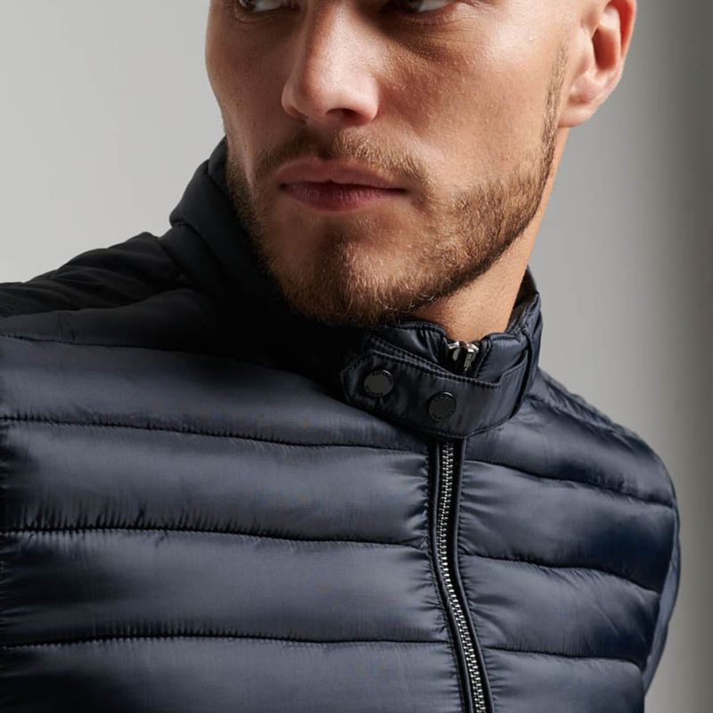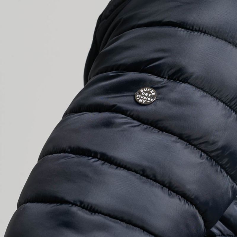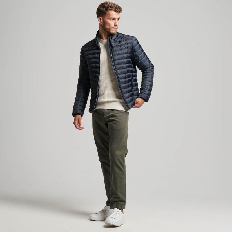 Esta cazadora acolchada ligera, ideal para combinar con otras prendas, es un clásico para el invierno. Su diseño minimalista y suave acolchado no solo combinarán perfectamente con tu estilo personal, sino que además te ayudarán a mantener el frío a raya mientras disfrutas de un óptimo nivel de comodidad. Su espíritu elegante e informal, ideal para cualquier situación, aportará además un toque refinado a tus opciones de abrigo para enfrentarte al frío. Corte entallado: un diseño que se ajusta más al cuerpo para ofrecer un look más elegante, Tecnología antidesgarros, Cuello con cierre de botones a presión, Cuello interior de punto, Cierre de cremallera, Dos bolsillos con cremallera, Puños interiores elásticos, Forro integral, Bolsillo interior con cremallera, Placa metálica de Superdry en la manga derecha.