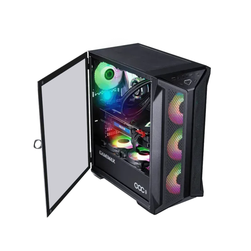 Chasis para juegos GameMax Brufen C1 COC, nacido para la solución de enfriamiento de CPU Intel Gen 10th, COC es Cooling & Over-Clocking, lo que significa overclocking de enfriamiento. Es un nuevo tipo de estructura de disipación de calor. Se agrega un ventilador Turbo a la placa principal del chasis para formar un nuevo conducto de aire dirigido tipo T dentro del sistema de PC para ayudar a enfriar varios accesorios en el sistema de PC