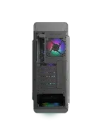 Los 4 ventiladores delanteros y traseros fijos RGB de 12 cm en total le dan a la carcasa un estilo único, mientras mantienen el sistema fresco. Además, la parte delantera puede soportar un radiador de 240 mm.