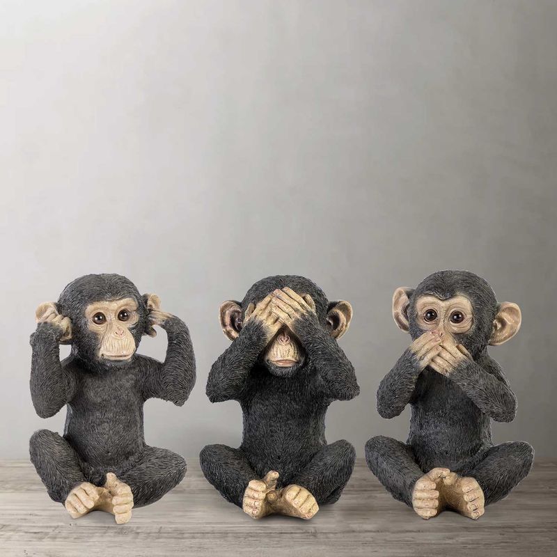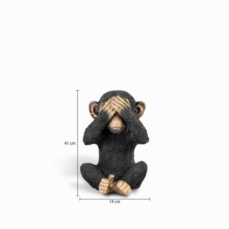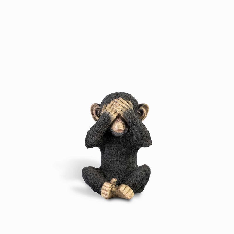 Chimpancé cubriendose los ojos, elaborado en poliresina y polvo de piedra, objeto decorativo para sala o estudio, personaliza cada espacio con pequeños detalles.