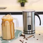 Batidor con resorte para espumar. Luces LED con apagado automático. Espuma y calienta en 2 minutos.