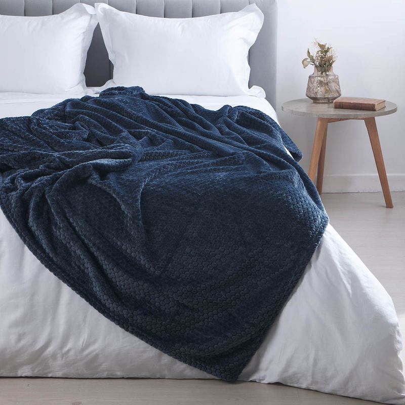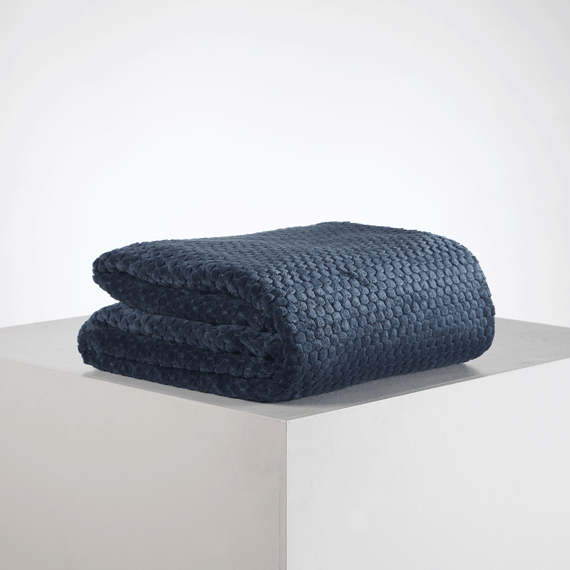 Cobija flannel fleece de 280 grs en un color azul profundo, complementado con una acogedora textura que la hace increiblemente suave. Perfecta para brindarte calidez en las noches frías o dar un toque único a tu cama.
