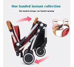 Material de estructura ALEACION DE ALUMINIO - T O L D I L L O O B S E Q U I O Mango (incluye cobertor en empuñadura) Respaldar de 3 posiciones regulables Bolsillo trasero en cubierta protectora Porta tetero o Porta vaso Lateral Acolchado extra (removible para lavar) Cinturón de seguridad con arnés de 5 puntos Llantas de GOMA EVA 4 Llantas delanteras giratorias 360° 4 Llantas traseras con freno Reposa-pies regulable Apoya pies fijo Canastilla FINA con capacidad de 5 Kg CERRADO FACIL