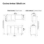 Cocina Ambar 120x 55 cm elaborada en tablero de aglomerado con recubrimiento melamínico y canto rígido en frentes. Mueble superior con 2 puertas cierre suave, locero y espacio para horno microondas y campana.Mueble inferior con 4 puertas cierre suave y un cajón con amplio espacio para almacena Y Mesón con lavaplatos integrado. (1 sola pieza sin empates).