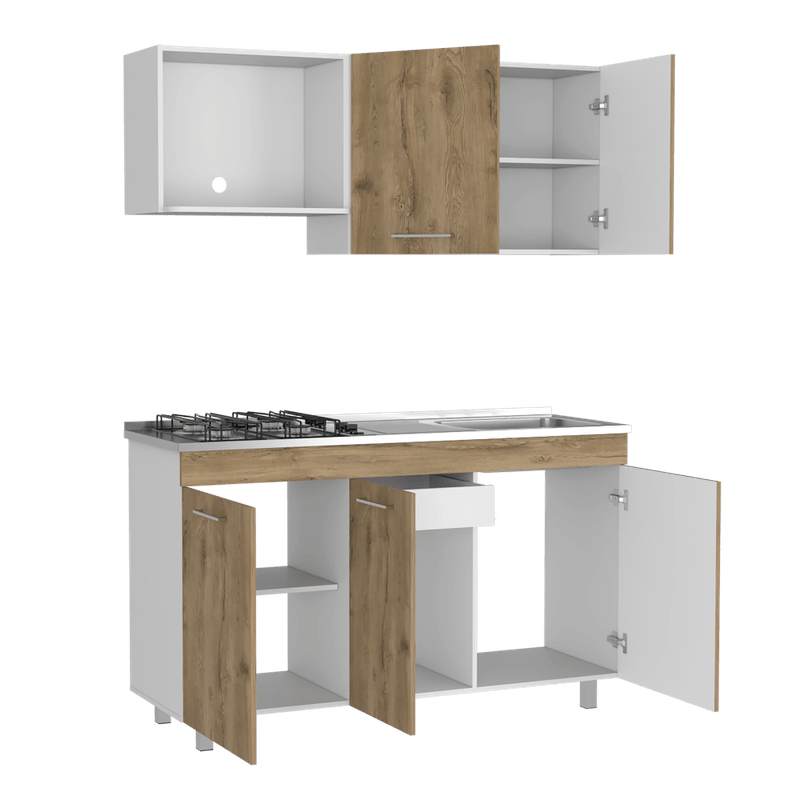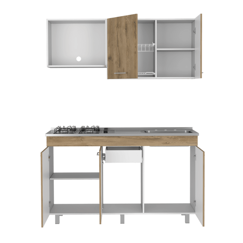 Elaborado en Madera aglomerada MDP, recubierta con láminas melamínicas de excelente calidad, en color Macadamia y Blanco Duqueza.
