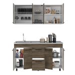 Cocina Integral Nasser, Nogal y Blanco, Incluye Mesón 150 Izquierdo ZF