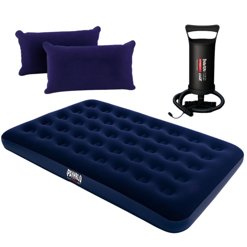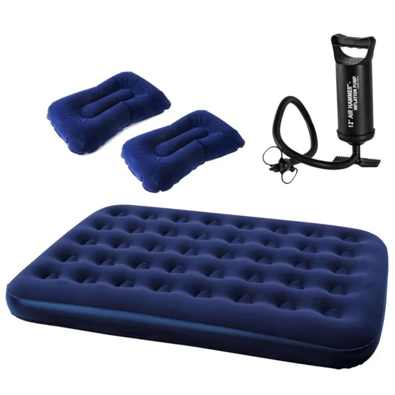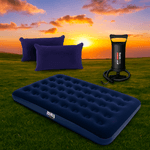 Incluye 2 almohadas inflables para complementar la experiencia de descanso y una bomba de inflar eficiente, que te permite tener el colchón listo en tan solo unos minutos, sin esfuerzo. Además, su válvula de aire de alta tecnología garantiza un inflado y desinflado rápido, evitando pérdidas de aire y asegurando firmeza durante toda la noche.