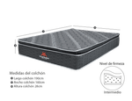 Sus características:-Colchón clasico, Acolchado por una Cara-Altura 28 Cm-Nivel de firmeza: Intermedia-Tela tejido de punto TERRA 280 gramos, que proporciona suavidad y confort al tactonidad resortada bonell boca 83 con resortes bicónicos-Hecha en acero de alto carbono, con marcos parimetrales y refuerzos laterales que brindan un soporte adecuado en el colchón y un descanso reparado