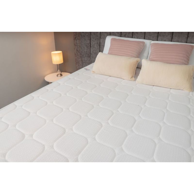Tela Acolchada de 2.5 centímetros, importada con tratamiento antia caros, hongos y bacterias, que brinda una sensación de frescura gracias a su tejido en algodón.