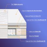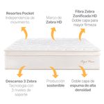 Las fibras TENCEL™ Lyocell y Modal se producen con al menos un 50?% menos de emisiones de carbono y consumo de agua. Incorpora además fibras Zebra Zonificada HD, con una estructura de celdas abiertas y tres niveles de firmeza, lo que permite una zonificación inteligente que aporta mayor durabilidad y una constante sensación de frescura.