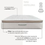 Colchón de calidad superior tipo hotelero , diseñado para un descanso reparador y placentero. Su tela acolchada de 300 gramos con propiedades de bamboo garantiza frescura, suavidad y protección antibacterial. Equipado con espuma PENTA Densidad 26 de 3 cm, ofrece soporte óptimo y durabilidad. La estructura de resortes Bonnell, fabricados en acero de alto carbono, proporciona firmeza, resistencia y adaptación ortopédica. Incluye una capa adicional "pillow" que brinda mayor confort y suavidad. Cuenta con tela antideslizante para una fijación segura y está diseñado para uso unidireccional. Se recomienda girarlo cada tres meses para mantener su calidad. Altura de 28 cm y firmeza intermedia, soporta hasta 90 kg por persona.