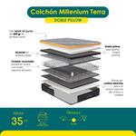 Colchon doble pillow con 35 cm de altura, está pensado para quienes buscan un descanso más completo y confortable, también ayuda a disminuir los puntos de presión generando un descanso reparador. Cuenta con una estructura interna de mayor desempeño y alta durabilidad. Su tapizado en tono oscuro tipo Terra aporta una apariencia moderna y contemporánea, ideal para quienes prefieren una estética más sobria en su habitación.