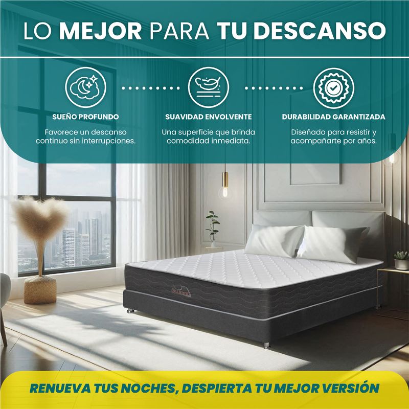 El Colchón Swan New Clínico Clásico está diseñado para quienes priorizan soporte firme, estabilidad y durabilidad, combinando una estructura reforzada con unidad resortada Bonnell de acero y espuma cassata de alta firmeza que brindan un descanso seguro y estable; es un colchón sencillo con una altura de 29 cm, Soportando hasta 170 kg y uso por ambas caras y materiales resistentes lo convierten en una opción ideal para entornos clínicos, hoteleros o para personas que requieren mayor soporte corporal, ofreciendo un descanso confiable, uniforme y de larga vida útil, pensado para acompañar el bienestar y la recuperación noche tras noche.