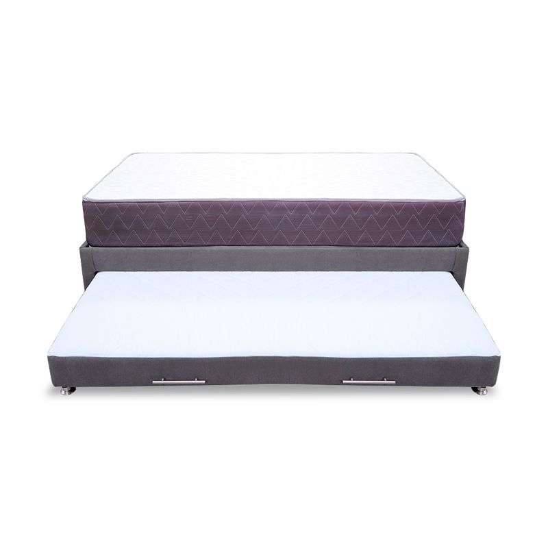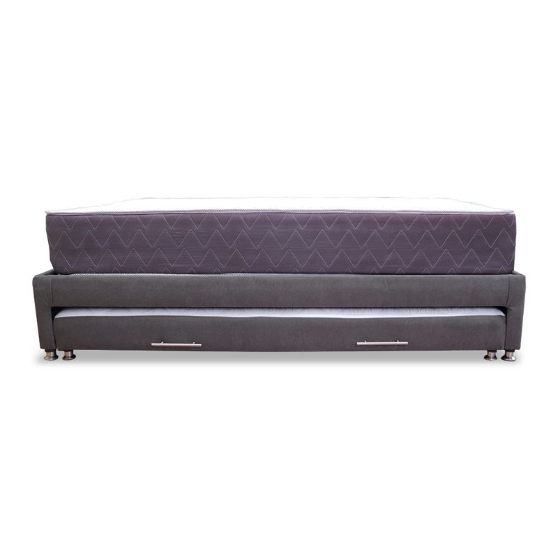 Cama Tarima Kunz 140x190 + Colchón Muller de 140x190 Semidoble Intermedio y Cama auxiliar de 130x178, Tela tipo Lino Color Gris Claro que ahorra espacio sin arriesgar comodidad, estructura fabricada en madera Pino inmunizada.