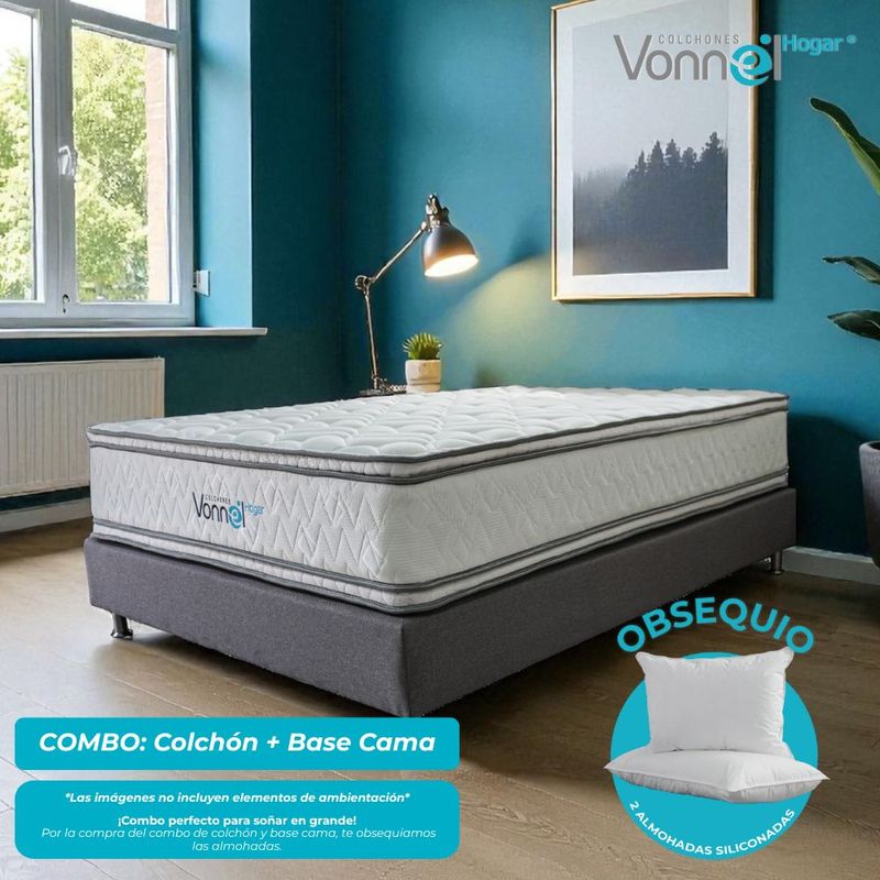 Con 32 cm de altura y soporte de 80 kg por persona, proporciona estabilidad y comodidad duradera. Incluye base cama y como obsequio almohada.