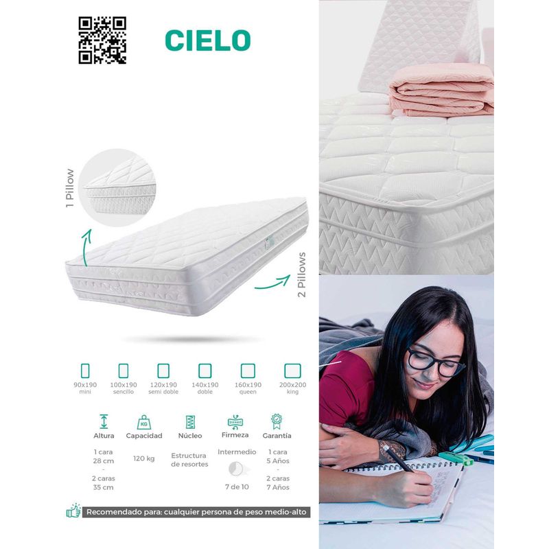 ELECTRODOMESTICOSHogarColchonesCombo Colchón Cielo + Base Cama + Protector + Almohada - Medida 140x190 - Firmeza Media