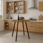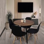 Combo Comedor Redondo Amaretto fabricado en melamina de 15 mm con protección antimicrobiana al 99.9%, patas metálicas blancas con pintura electroestática con niveladores. Set de 4 Sillas estructura asiento en polipropileno y patas de madera natural - Fácil ensamble.