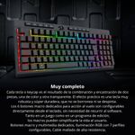 Cada tecla o keycap es el resultado de la combinación y encastración de dos piezas, una de color y otra transparente. El efecto práctico es una tecla muy robusta y súper duradera, que no se borronea ni se despinta.