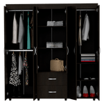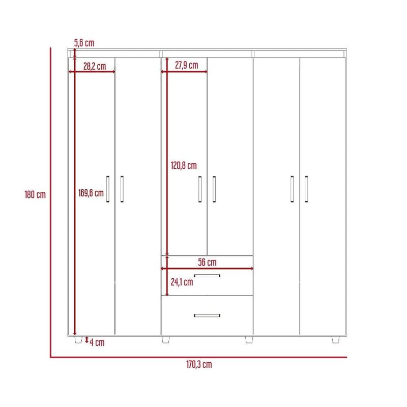 Closet, con amplios espacios y entrepaños para organizar, 6 puertas abatibles, 2 tubos cromados, 2 cajones organizadores, y deslizadores de plástico para apoyo al piso.