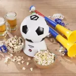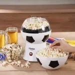 Crispetera Balón L52020: Diseño temático de balón de fútbol, ideal para reuniones y temporada mundialista. • Sistema de aire caliente que permite preparar crispetas sin necesidad de aceite. • Preparación rápida en aproximadamente 3 minutos. • Cubierta 2 en 1 que se convierte en tazón para servir. • Medidor de maíz integrado, que también funciona como dispensador de mantequilla. • Funcionamiento sencillo con un solo botón de encendido. • Tapa removible y cubierta transparente para controlar la preparación. • Fabricada en plástico de alta resistencia. • Potencia de 1200 W. • Voltaje 110–120 V / 60 Hz. • Dimensiones del producto: 20.2 × 20.2 × 29.5 cm. • Peso aproximado: 1.37 kg.