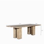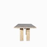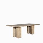 Mesa de comedor 8 puestos en madera de olmo maciza, con amplio tablero y patas en forma de columnas de diseño moderno. Ideal para largas comidas o cenas con familia y amigos. Producto hecho a mano con madera de olmo. Las variaciones y las imperfecciones hacen parte de su diseño y lo convierten en una pieza única.