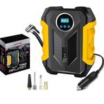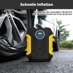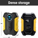 Presión máxima de trabajo de 150 PSI: con presión máxima de 150 PSI y flujo de aire de 35 l/min. Puede inflar el neumático de coche 195/55/R15 de 0 a 35 psi en menos de 5 minutos. Mucho más eficaz y más rápido que la bomba tradicional. Medidor de presión de neumáticos preciso integrado.