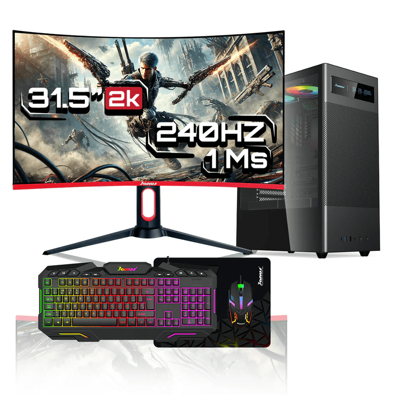 Computador de Escritorio Janus AMD RYZEN 5 5600GT Memoria RAM 16GB SSD 512GB M.2 Fuente Janus 400W MONITOR  GAMER 32” 2K 240HZ WINDOWS PREINSTALADO