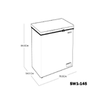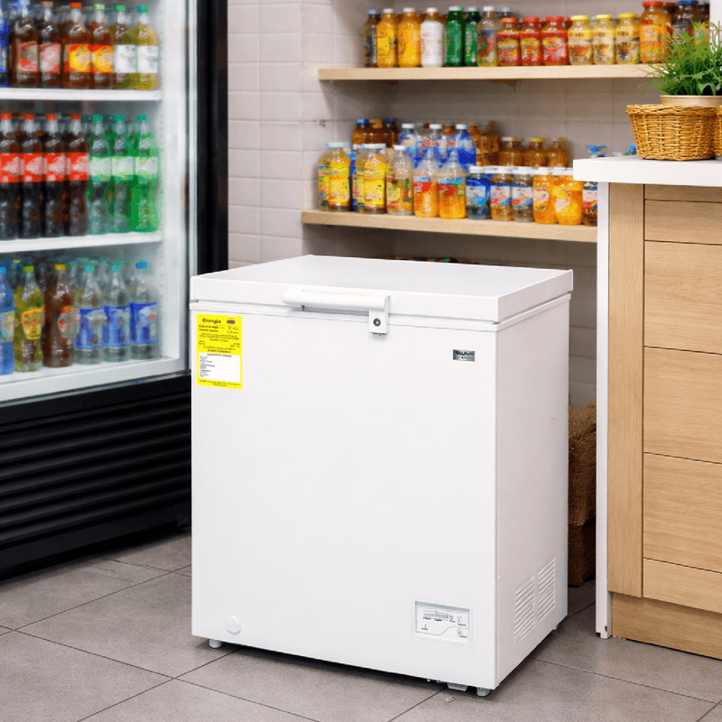 El congelador horizontal de 145 litros es un equipo eficiente y versátil, ideal para almacenamiento en espacios grandes. Ofrece un volumen neto frigorífico de 145 litros y utiliza un sistema de refrigeración hermético con refrigerante R600a, conocido por su bajo impacto ambiental. El control de temperatura electrónico, con 7 niveles ajustables, asegura una precisión en la conservación de los alimentos. El desescarche manual simplifica el mantenimiento, y la puerta con cerradura proporciona seguridad adicional. El congelador también cuenta con una luz LED interna para mejor visibilidad, una cesta de alambre y un dispositivo de eliminación de agua.