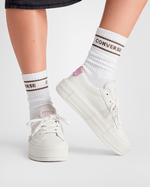 Las Converse Chuck Taylor All Star Cruise son un modelo que fusiona la silueta clásica de lona del Chuck Taylor con un fuerte estilo retro y skater inspirado en la contracultura urbana de los años 90. Se distingue por sus detalles premium de gamuza (en la lengüeta y ojales) y sus cordones extra anchos de poliéster, que le dan un look desenfadado y throwback.