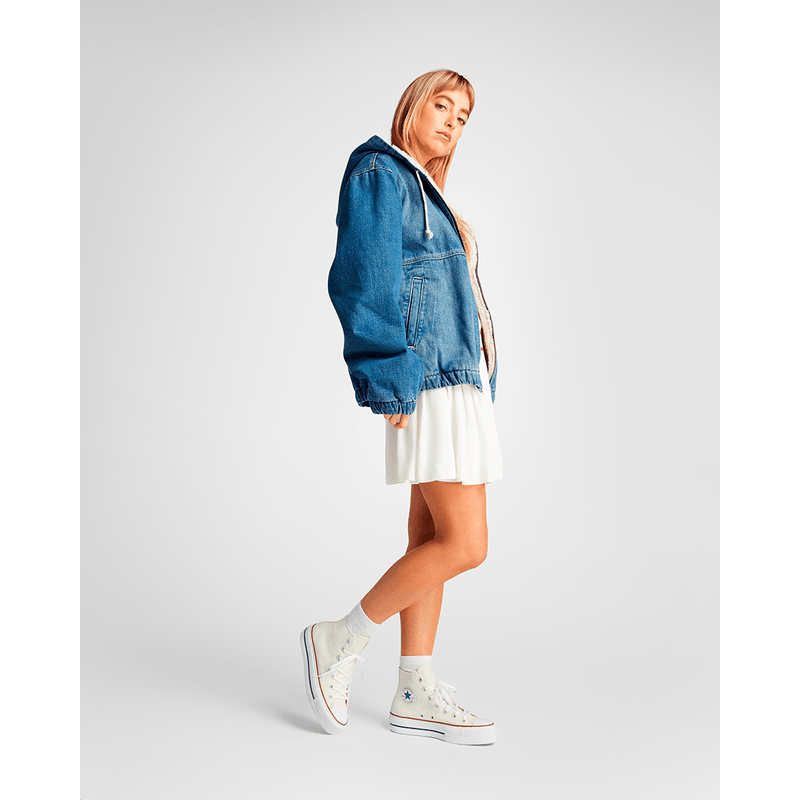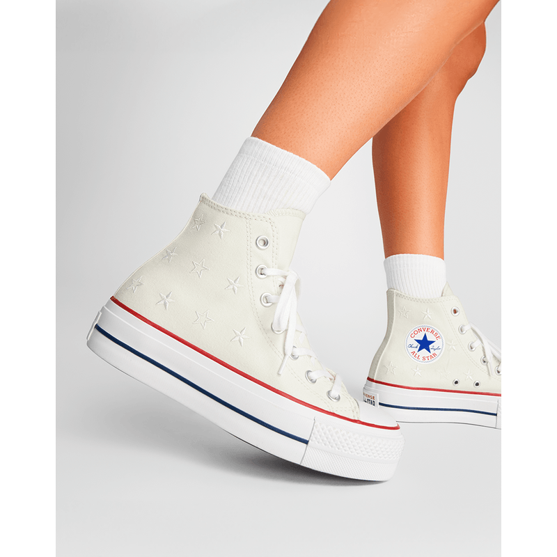 El modelo Converse Chuck Taylor All Star Lift Platform (conocido simplemente como Lift Platform) es una variante moderna y muy popular del zapatilla clásico que eleva la silueta con una plataforma considerablemente más gruesa, a menudo de doble capa, que añade varios centímetros de altura. Mantiene la esencia del icónico Chuck Taylor con la parte superior de lona clásica y la puntera de goma, pero la suela vulcanizada es su elemento definitorio.