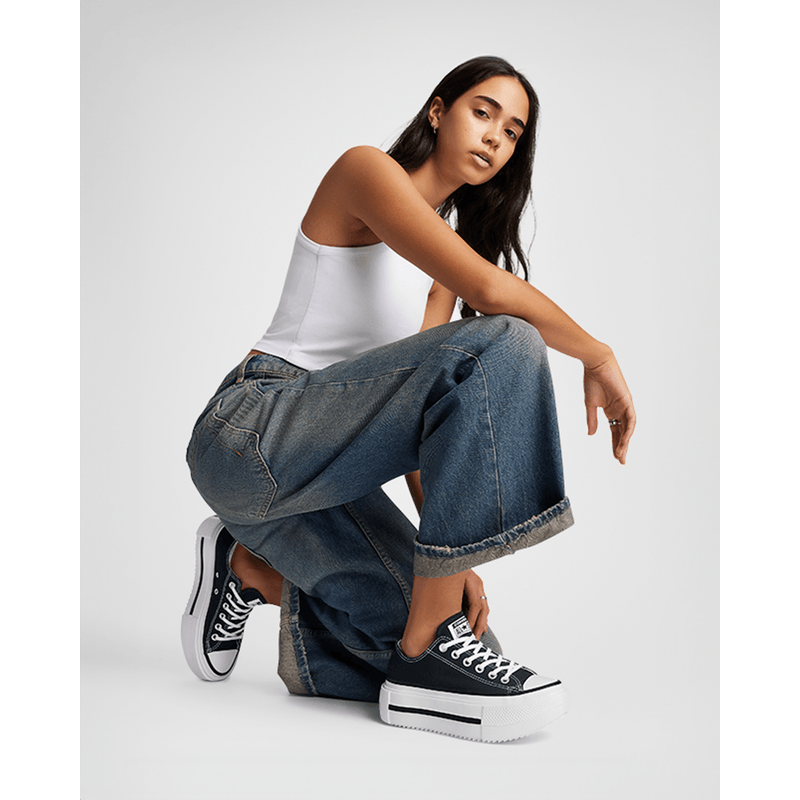 Las Converse Chuck Taylor All Star Lift Double Stack representan la máxima expresión de la tendencia de plataformas dentro de la línea Converse, destacándose por su plataforma ultra-elevada que literalmente duplica la altura del modelo Lift estándar, alcanzando una elevación de aproximadamente 5 cm. Este diseño llamativo y maximalista mantiene la parte superior de lona clásica del Chuck Taylor All Star, pero la suela es su elemento distintivo.