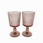 Set de dos (2) copas en vidrio con capacidad para 260 ml, con textura en líneas inspirada en los patrones geométricos. Se puede servir en ellos variedad de licores o bebidas frías en ocasiones formales e informales