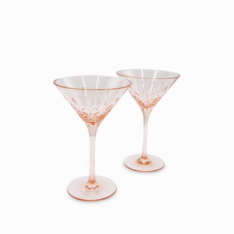 Set de dos (2) copas cortos en acrílico y poliestireno con capacidad para 236 ml, diseño especial para tragos cortos tipo martini. Se puede servir en ellos variedad de licores o bebidas frías en ocasiones formales e informales. Su diseño los convierte en los protagonistas de toda celebración