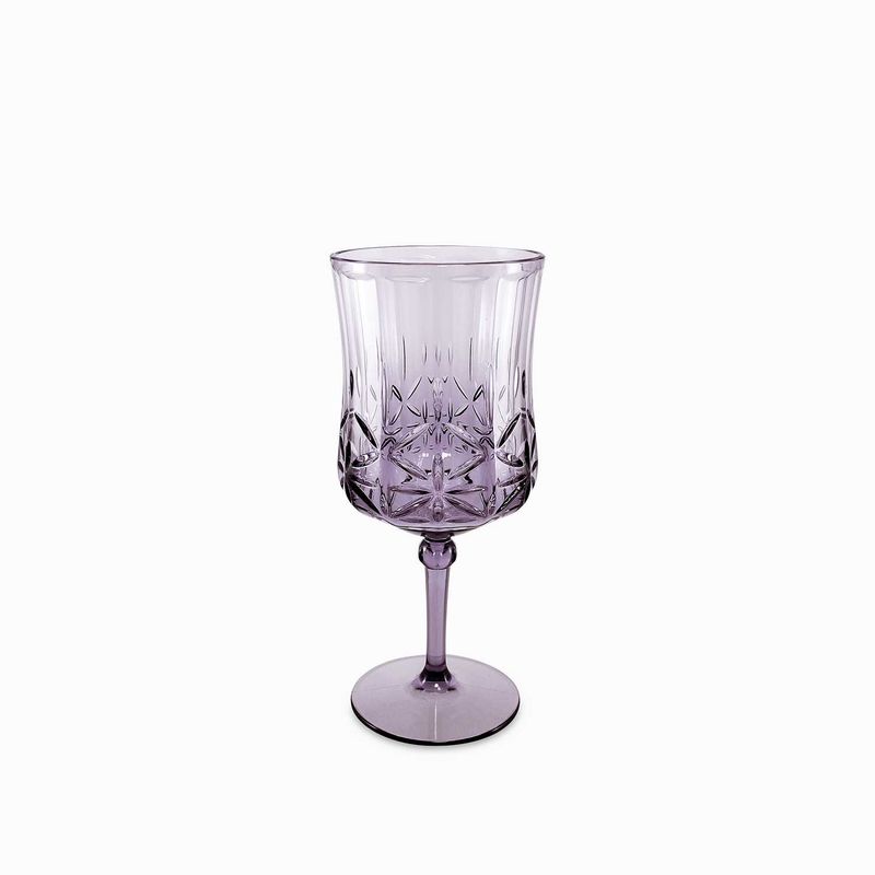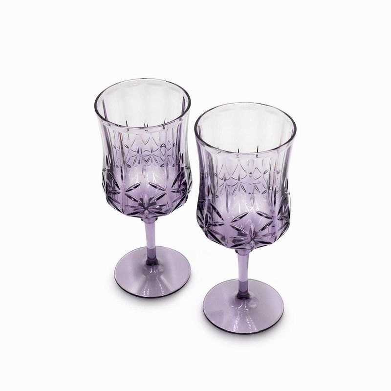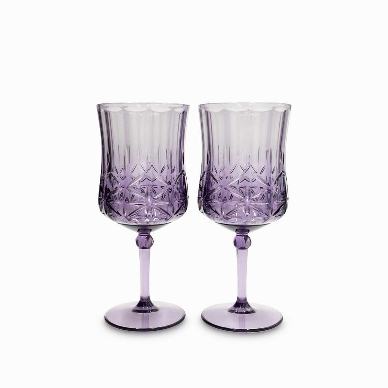 Set de dos (2) copas en acrílico de 472 ml, de la colección Venus morado, es una solución para usar en el exterior, no se rompe.